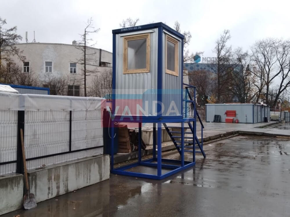 • обзорность. Контрольно-пропускной пункт должен оборудоваться окнами с широким обзором, чтобы изнутри помещения можно было контролировать вверенную территорию. Некоторые будки размещаются на возвышении для увеличения угла обзора. Для свободного доступа на площадку будка оборудуется безопасной металлической лестницей. Для обзора удаленных объектов применяется видеонаблюдение;
